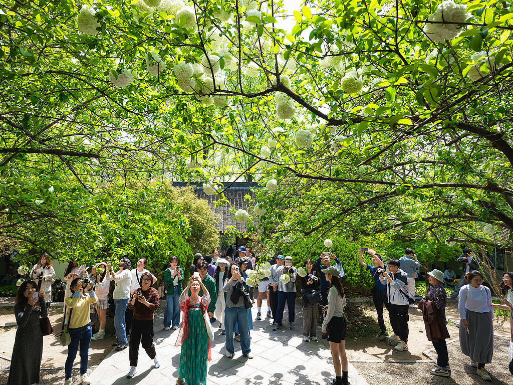 2026年4月5日,南京,游客在清凉山公园赏花游玩。视觉中国 图